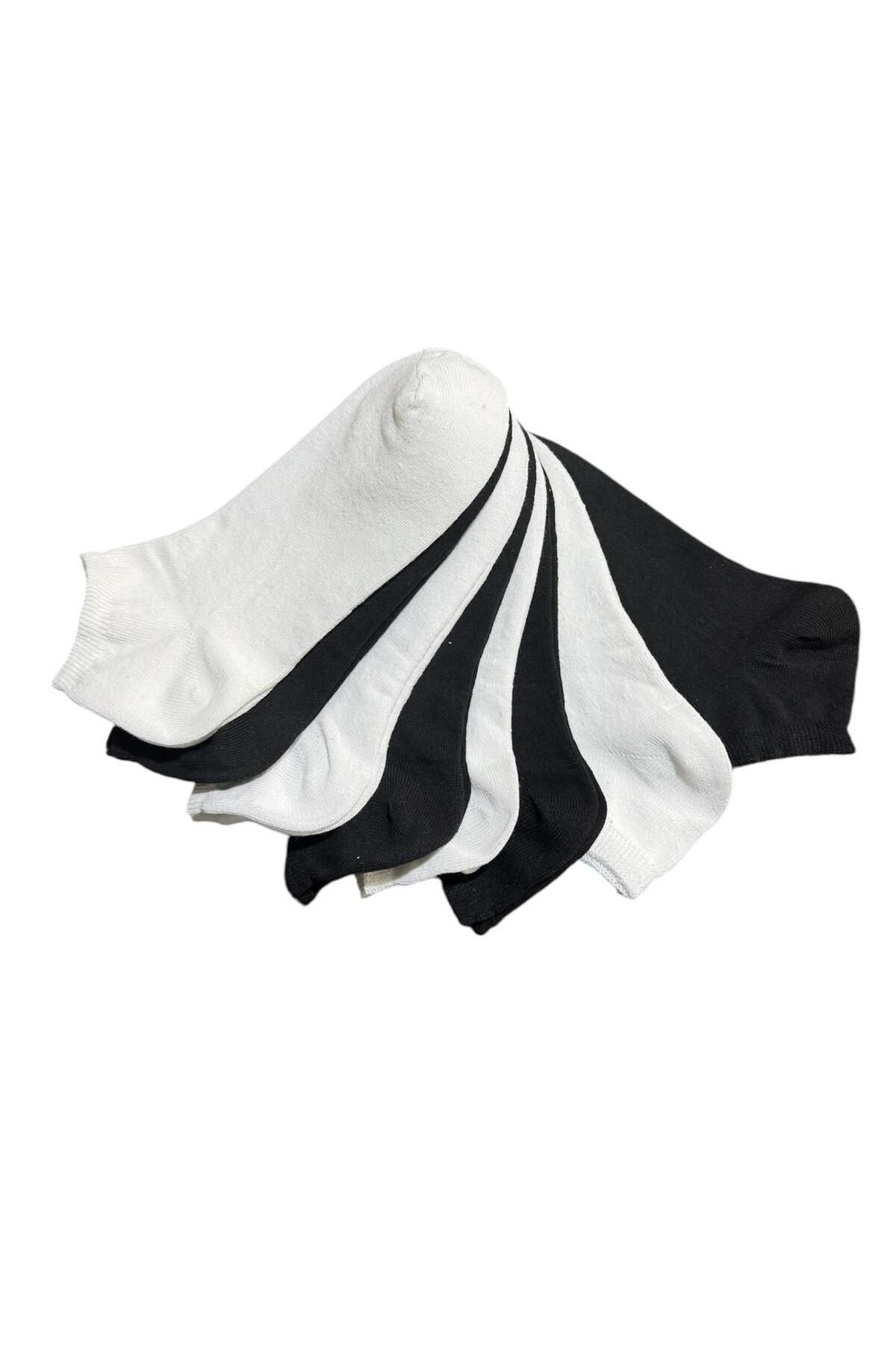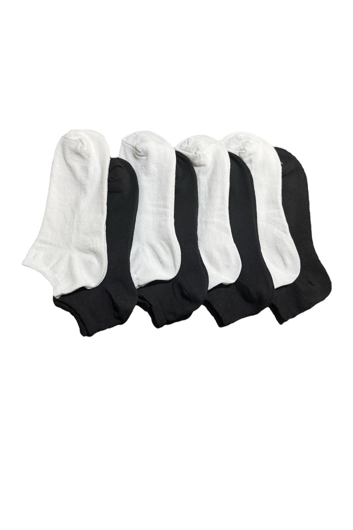 8 Çift Erkek Patik Pamuklu Beyaz Siyah Çoraplar F12