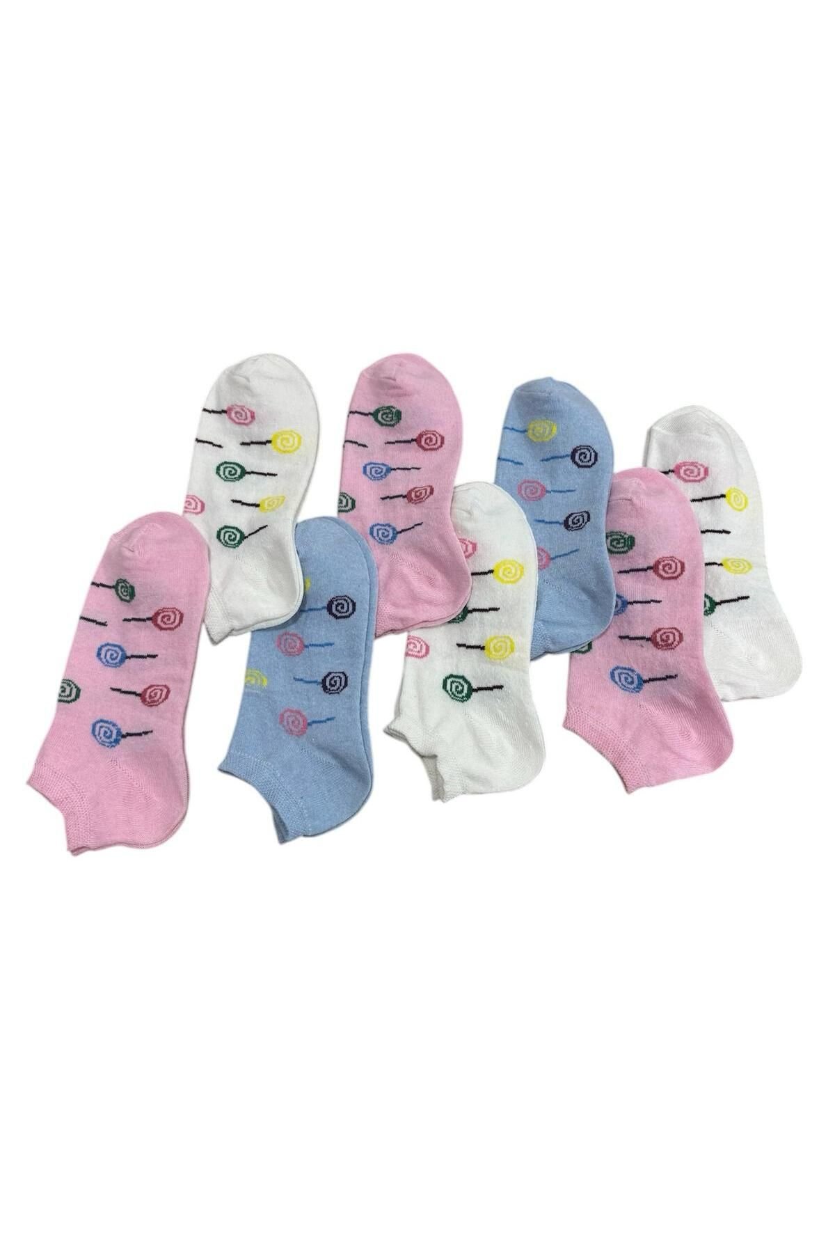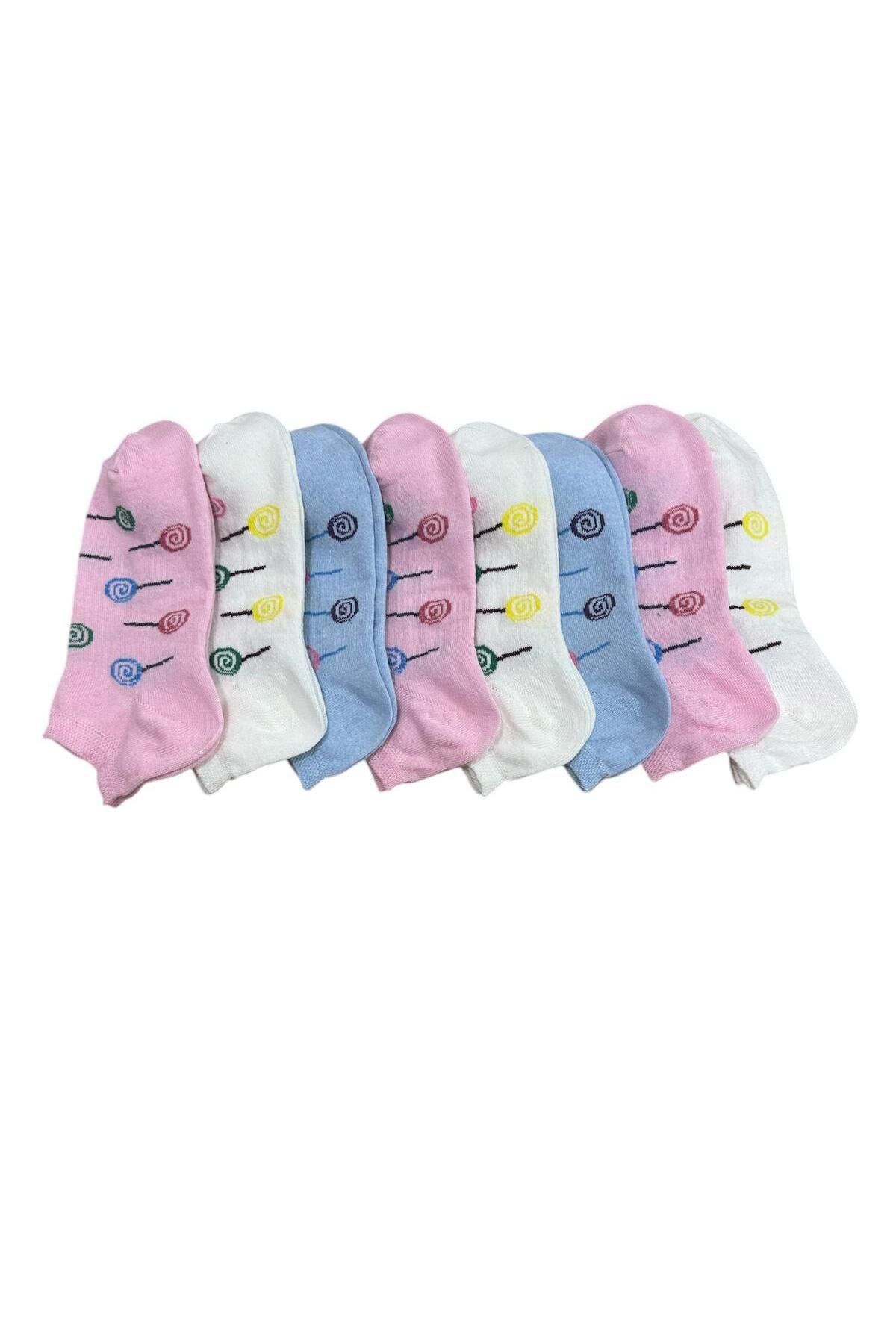 8 Çift Kadın Patik Pamuklu Desenli Renkli B3