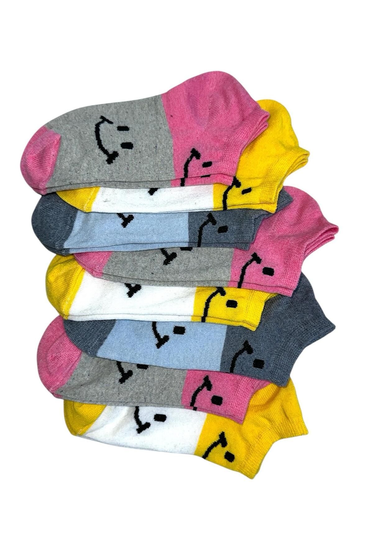Kadın Patik 8 Çift Renkli Gülücük Desenli 1-TYC626634838B506663481500