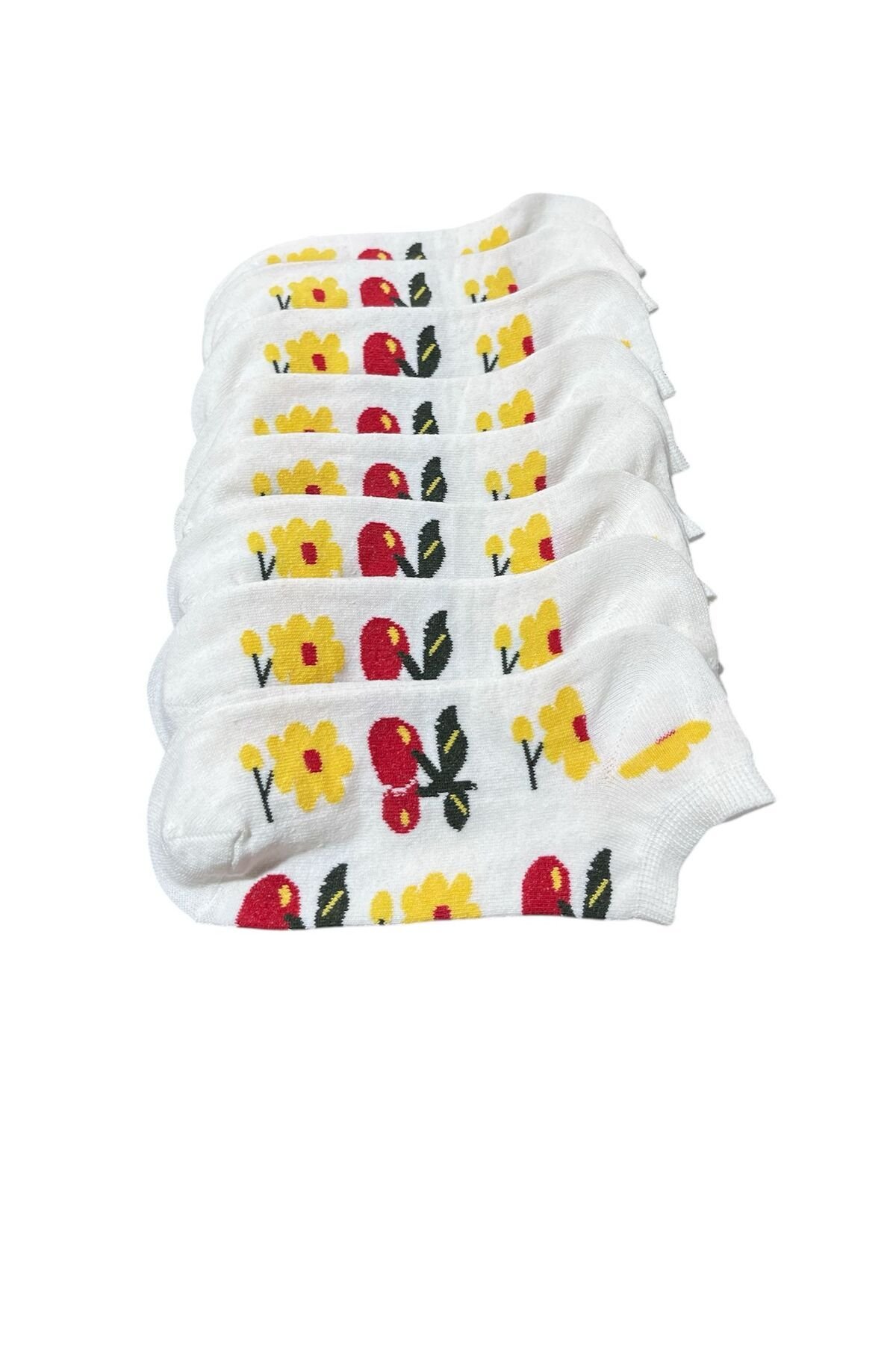 Kadın Patik Pamuklu 8 Çift Kiraz Desenli Beyaz 1-S26