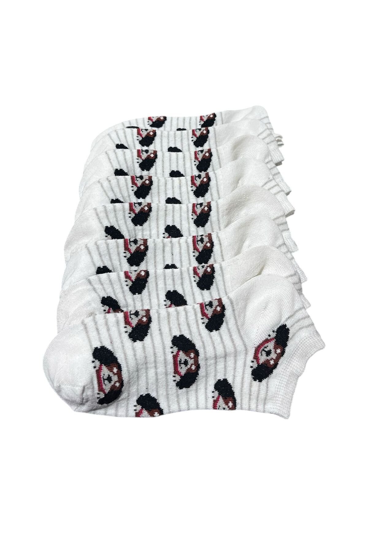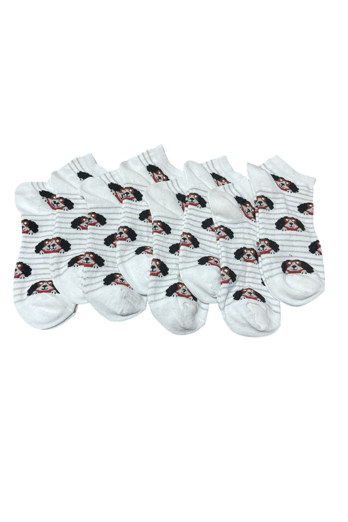 Patik Pamuklu 8 Çift Beyaz Köpek Desenli s23